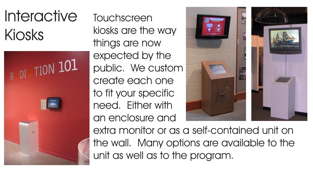 Museum-quality interactives are what is happening. We create your dream display and work with you to make it perfect and reliable.